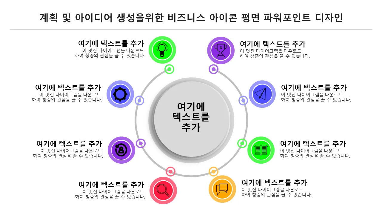 계획 및 아이디어 생성을 위한 비즈니스 아이콘 플랫 파워포인트 디자인