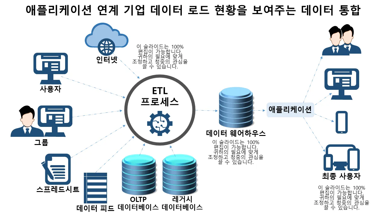 데이터 분석 프리젠테이션을 위해 애플리케이션 및 최종 사용자의 엔터프라이즈 데이터 로드를 보여주는 전문적으로 설계된 데이터 통합입니다. 현대적인 디자인의 편집 가능한 슬라이드로 비즈니스 전문가, 컨설턴트 및 팀에 적합합니다. 깔끔한 레이아웃 공간...