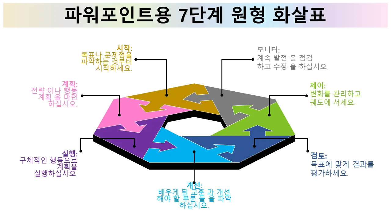 Powerpoint용 7단계 원형 화살표 다이어그램