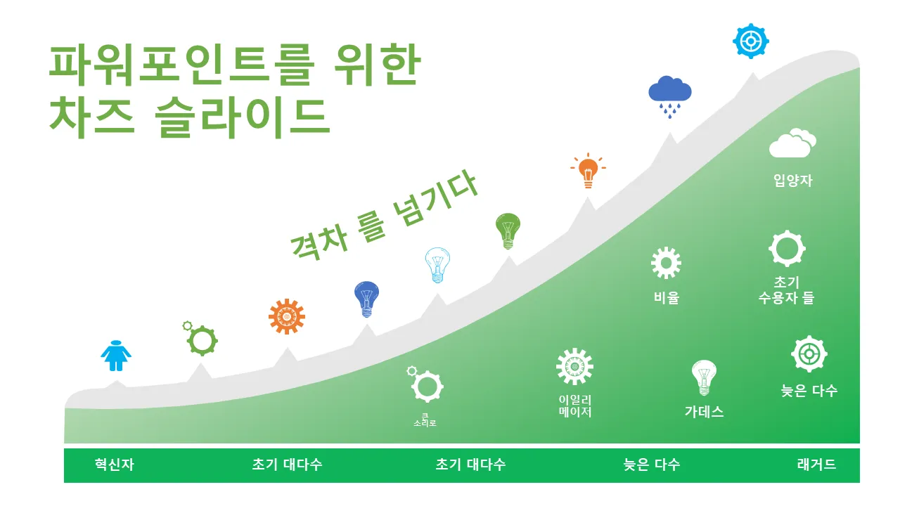 스타트업 창업자가 투자자에게 Crossing The Chasm 전략을 제시할 수 있도록 디자인된 전문 PowerPoint 템플릿입니다. 시장 채택 및 제품 출시 단계에 대한 편집 가능한 다이어그램과 명확한 시각적 가이드가 포함되어 있습니다.
