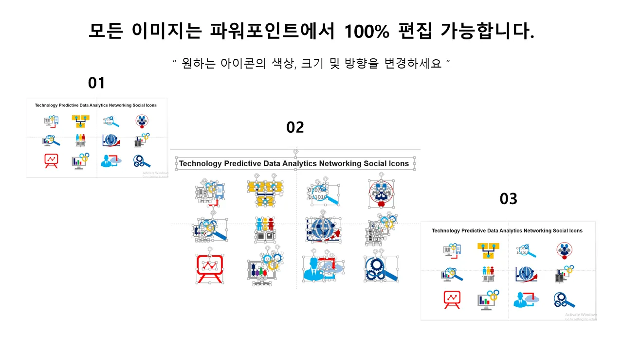 0115 기술 예측 데이터 분석 네트워킹 소셜 아이콘 파워포인트 슬라이드의 특징
