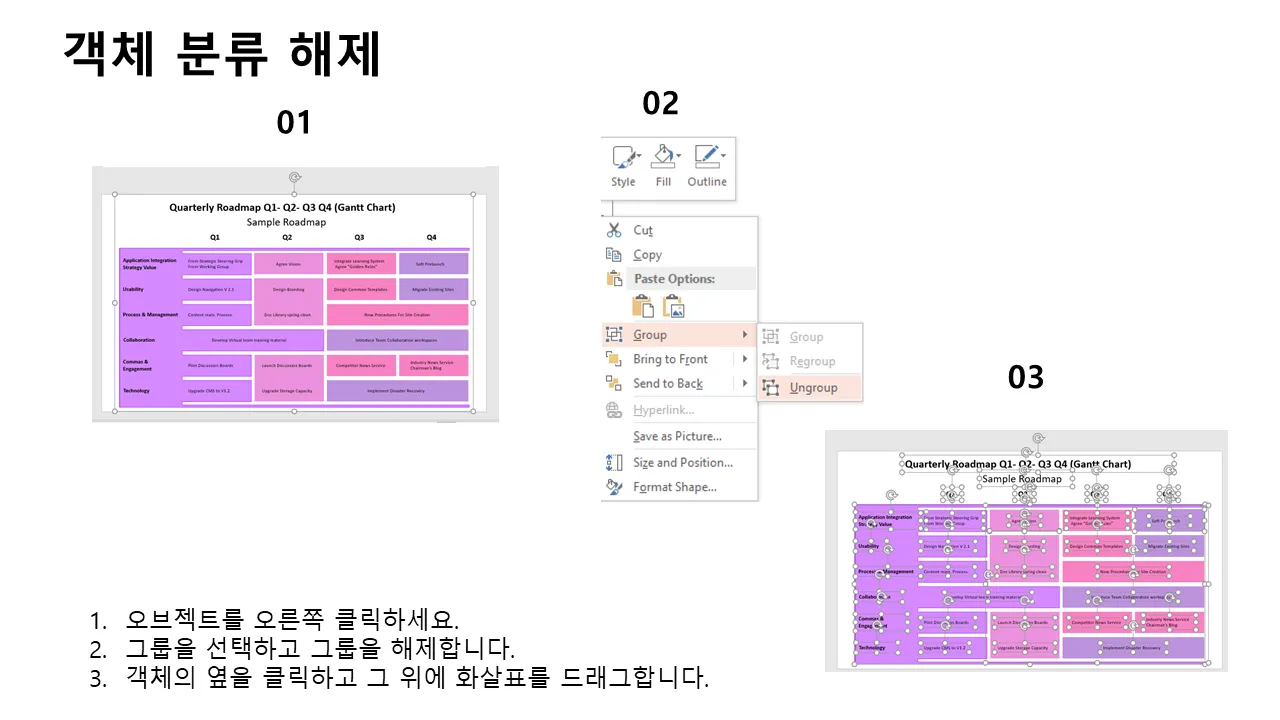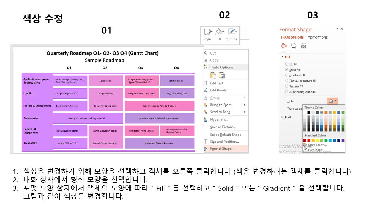 분기별 로드맵 계획 PowerPoint 템플릿 설명