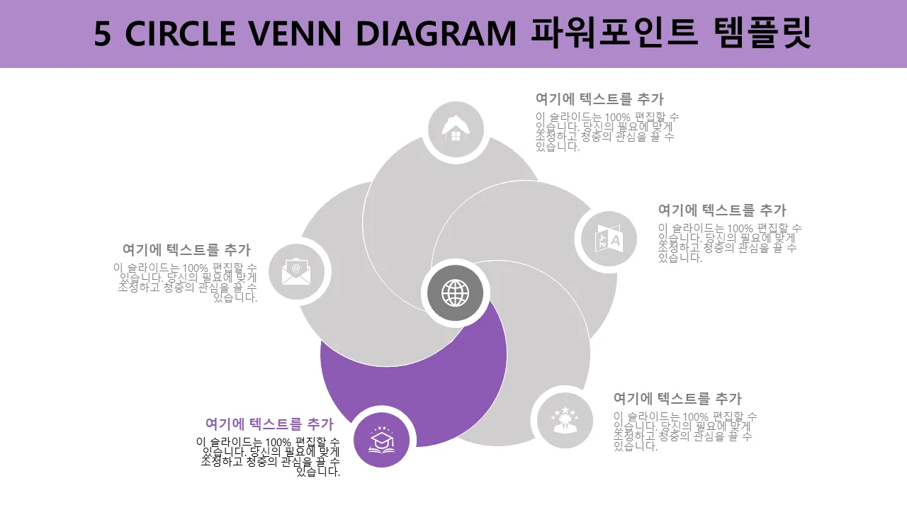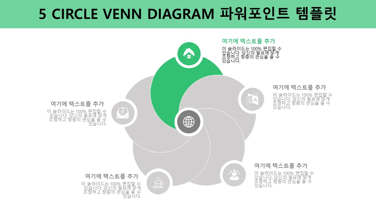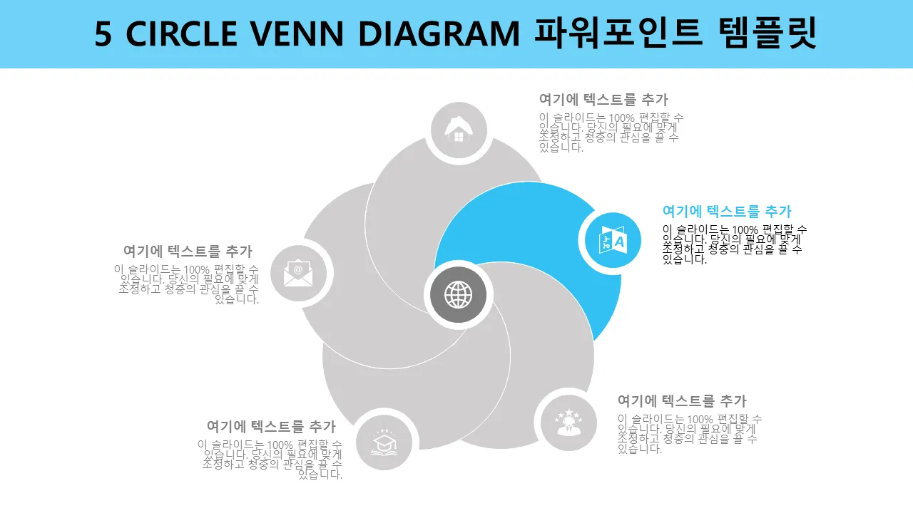 5 서클 벤다이어그램 파워포인트 템플릿의 특징