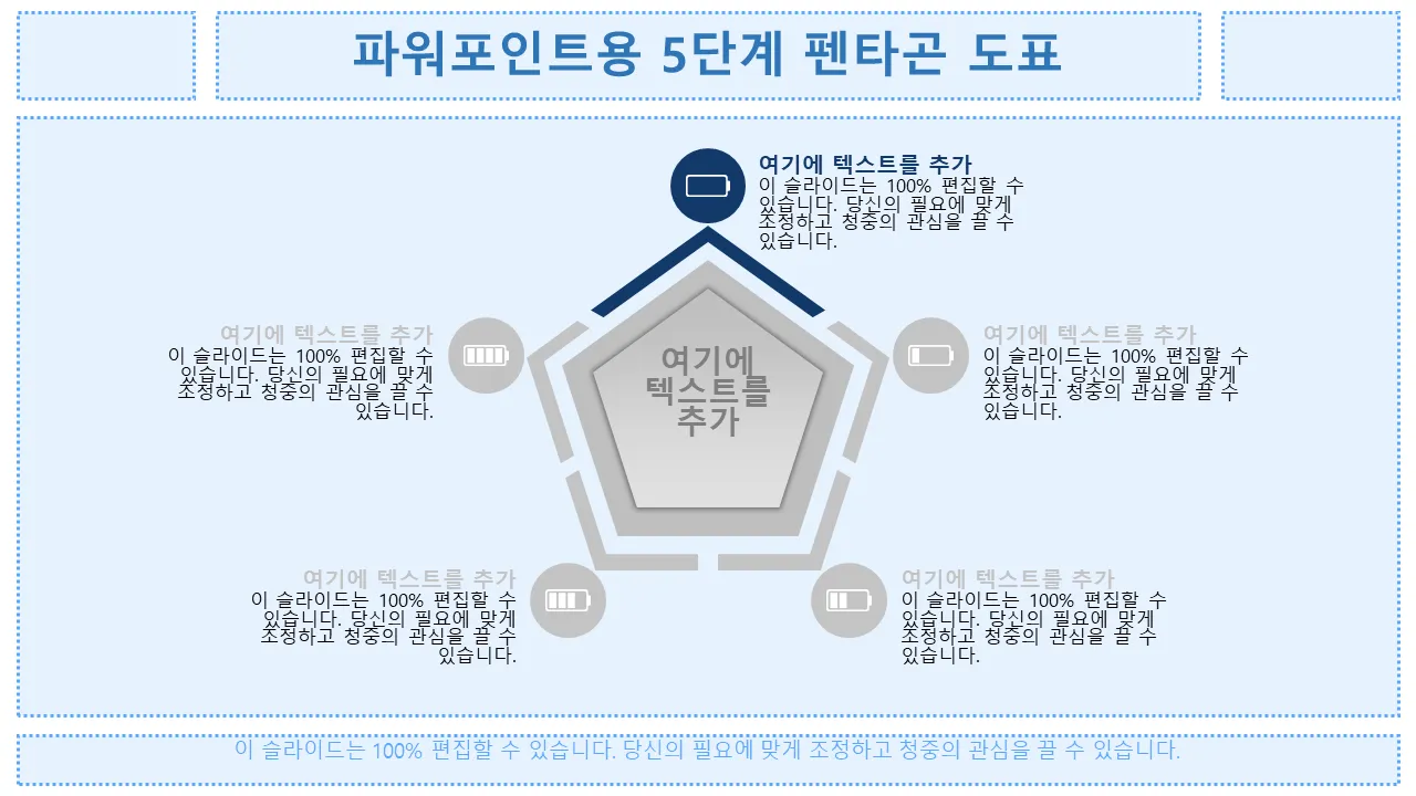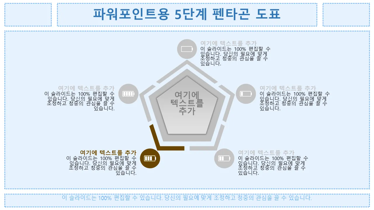 5단계 오각형 모양 파워포인트 다이어그램의 특징