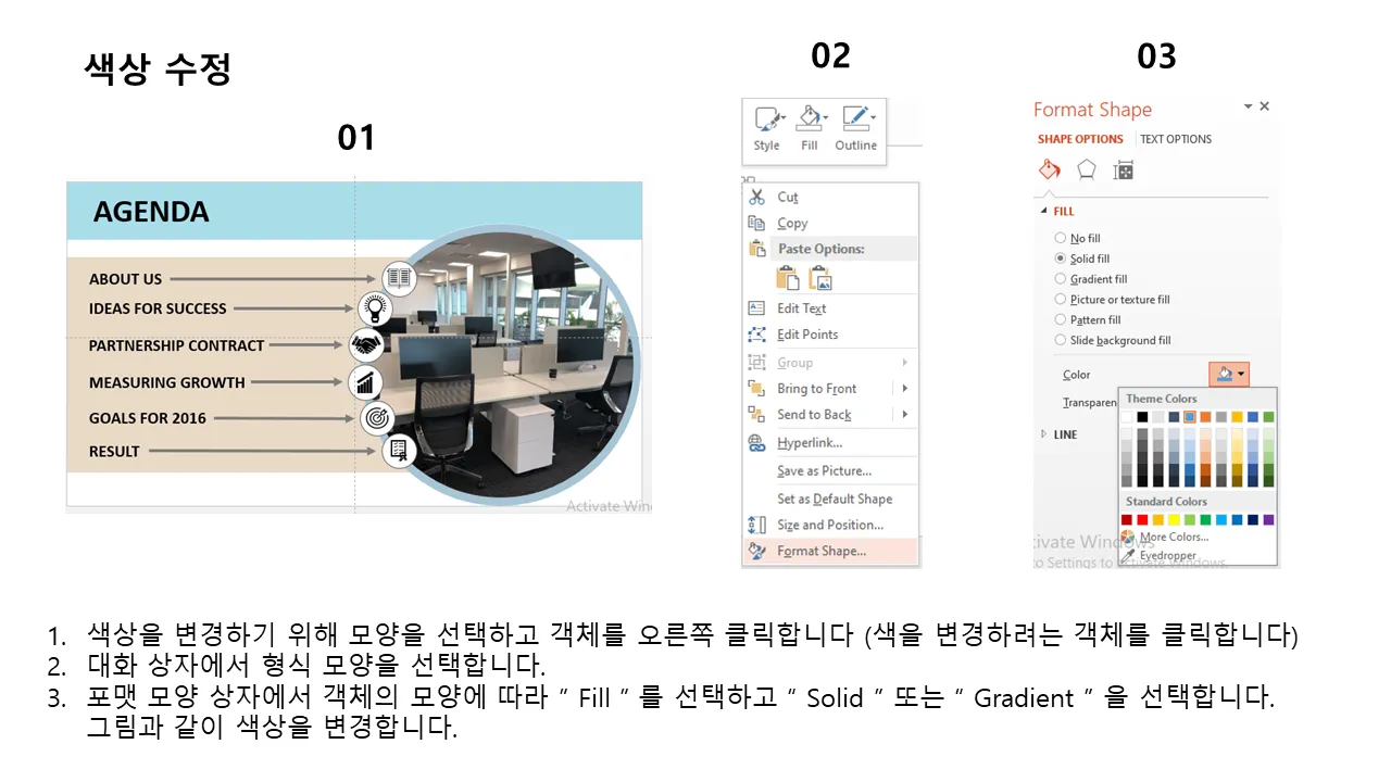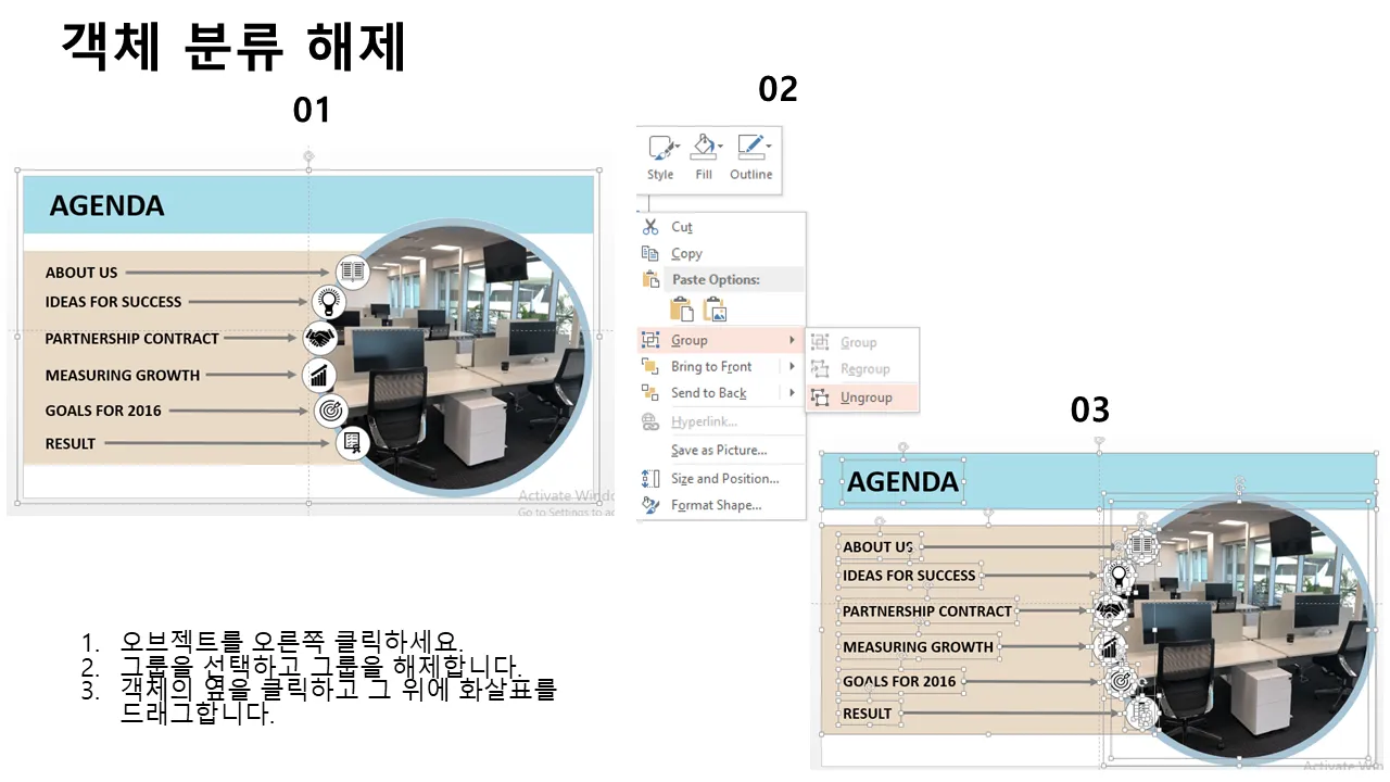 컷 이미지 아이콘이 포함된 의제 슬라이드 PowerPoint 템플릿