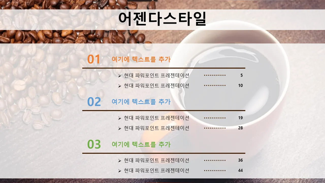 블랙 커피 콩 파워포인트 템플릿의 특징