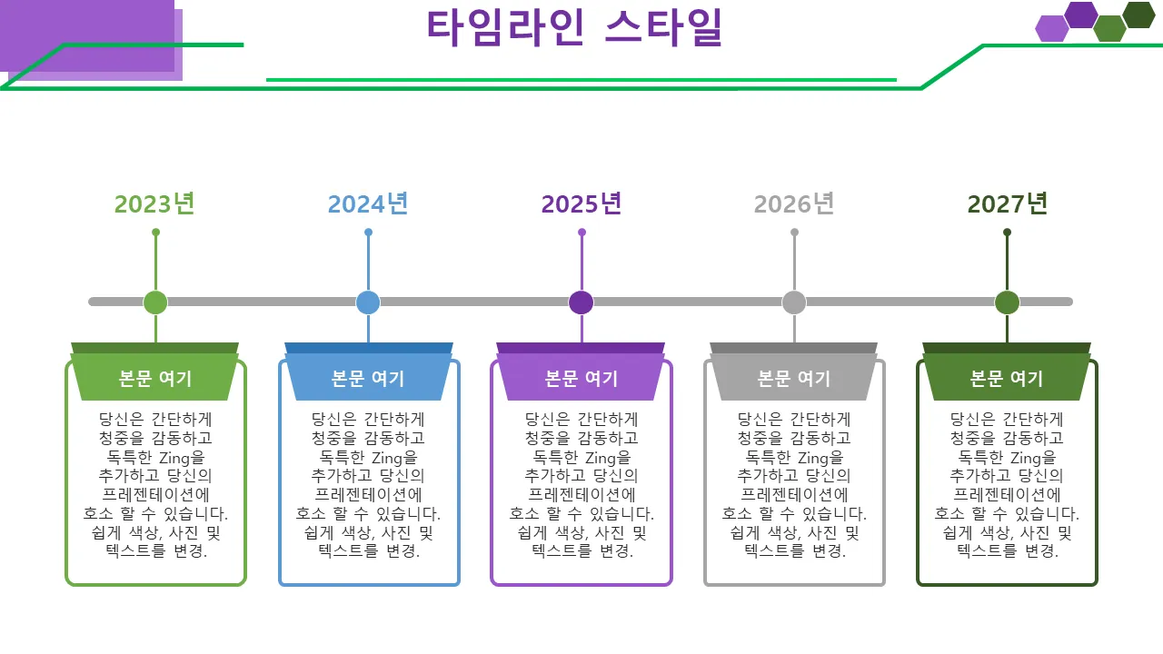 - 일관적인 스토리텔링을 위해 모든 슬라이드에서 일관된 디자인 언어