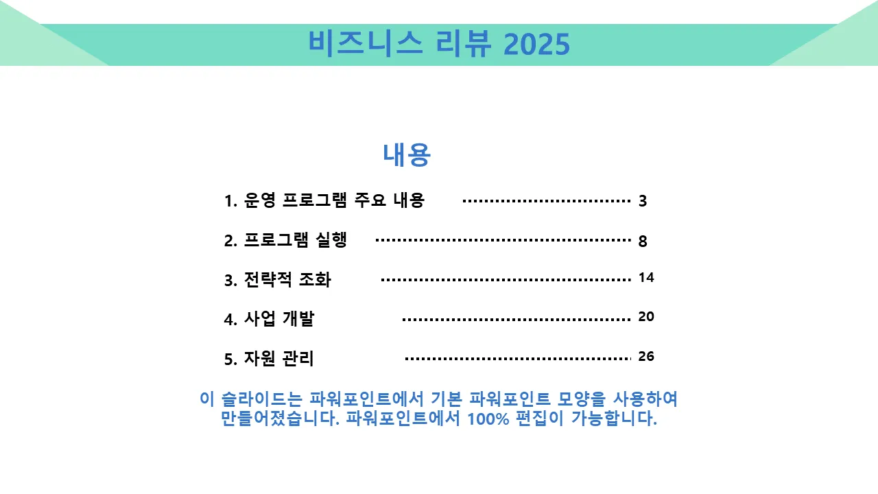 비즈니스 검토 파워포인트 템플릿의 특징