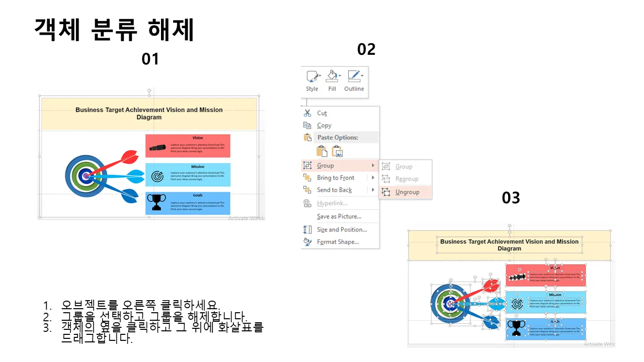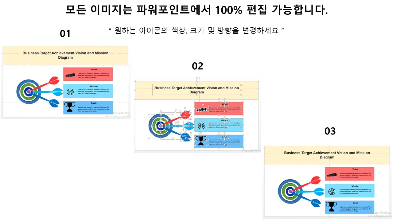 비즈니스 목표 달성 비전 및 미션 다이어그램 파워포인트 템플릿의 특징