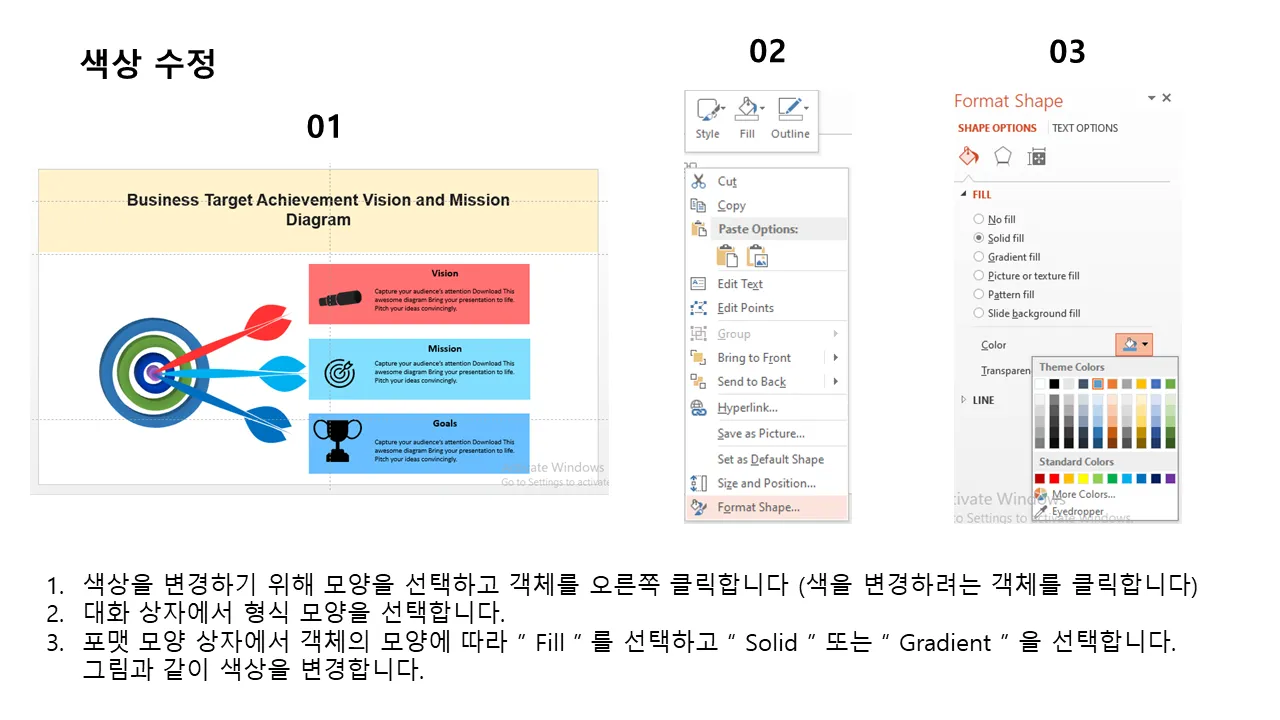 비즈니스 비전 사명 다이어그램 PowerPoint 템플릿 설명