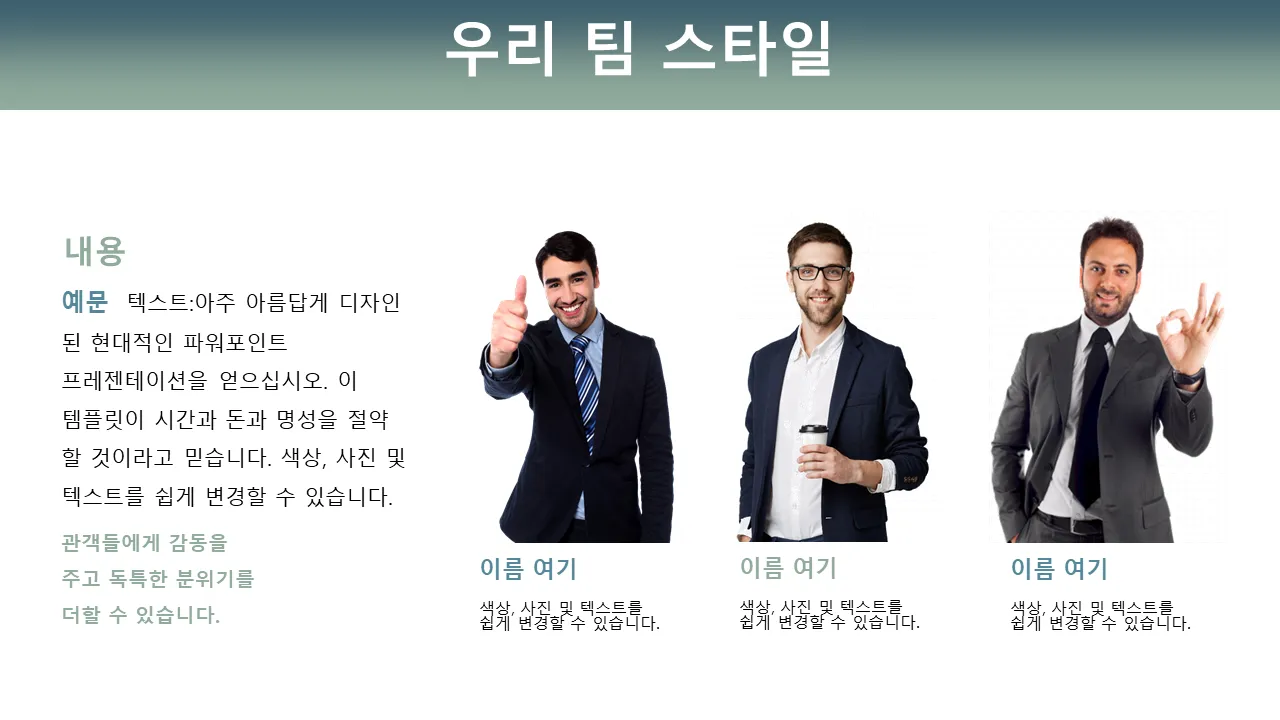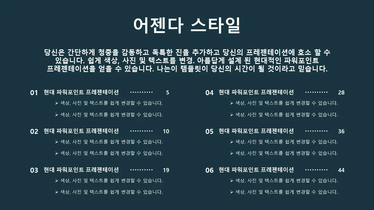 - 원활한 전달을 위해 미리 디자인된 슬라이드 전환 및 애니메이션