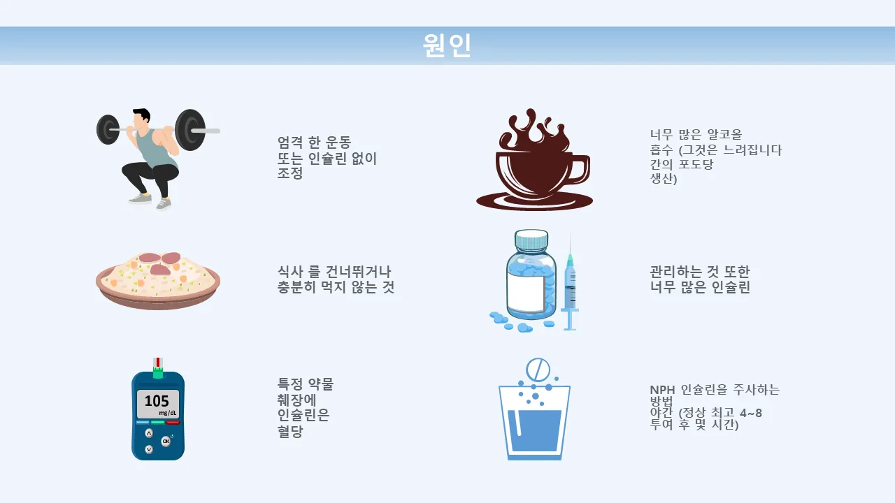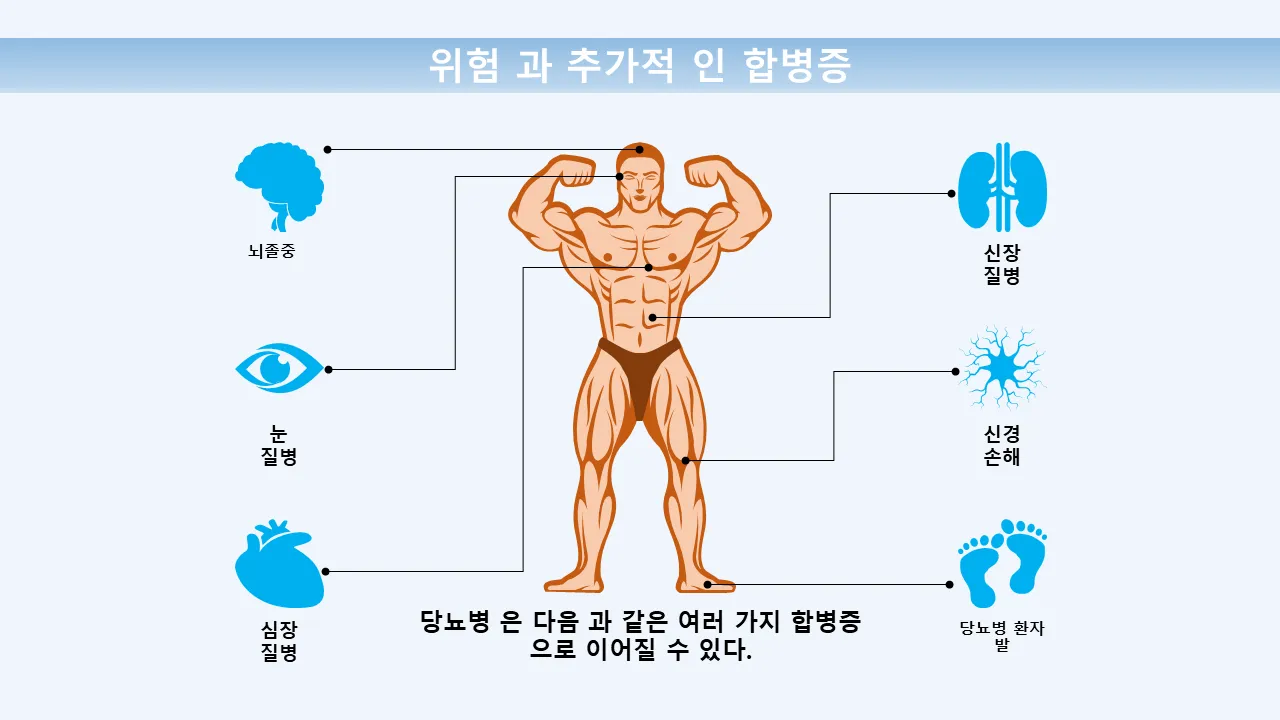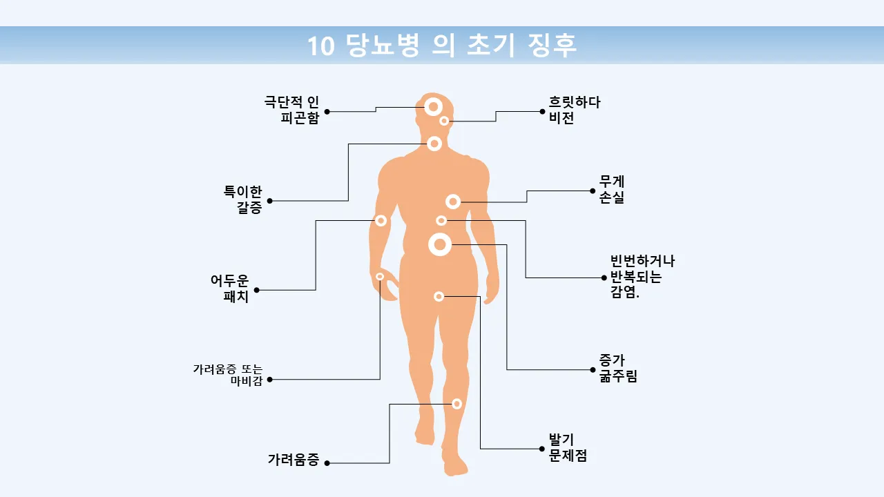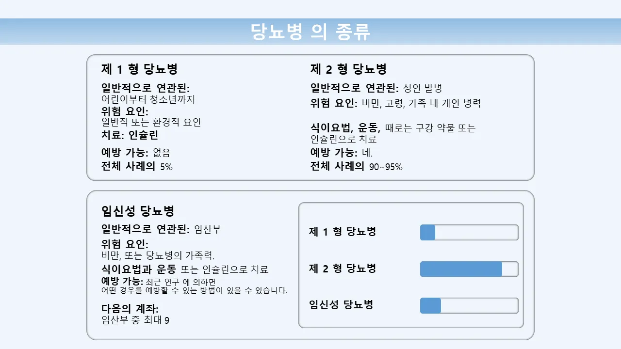 - 당뇨병 증상, 원인 및 예방을 다루는 시각적으로 구조화된 슬라이드