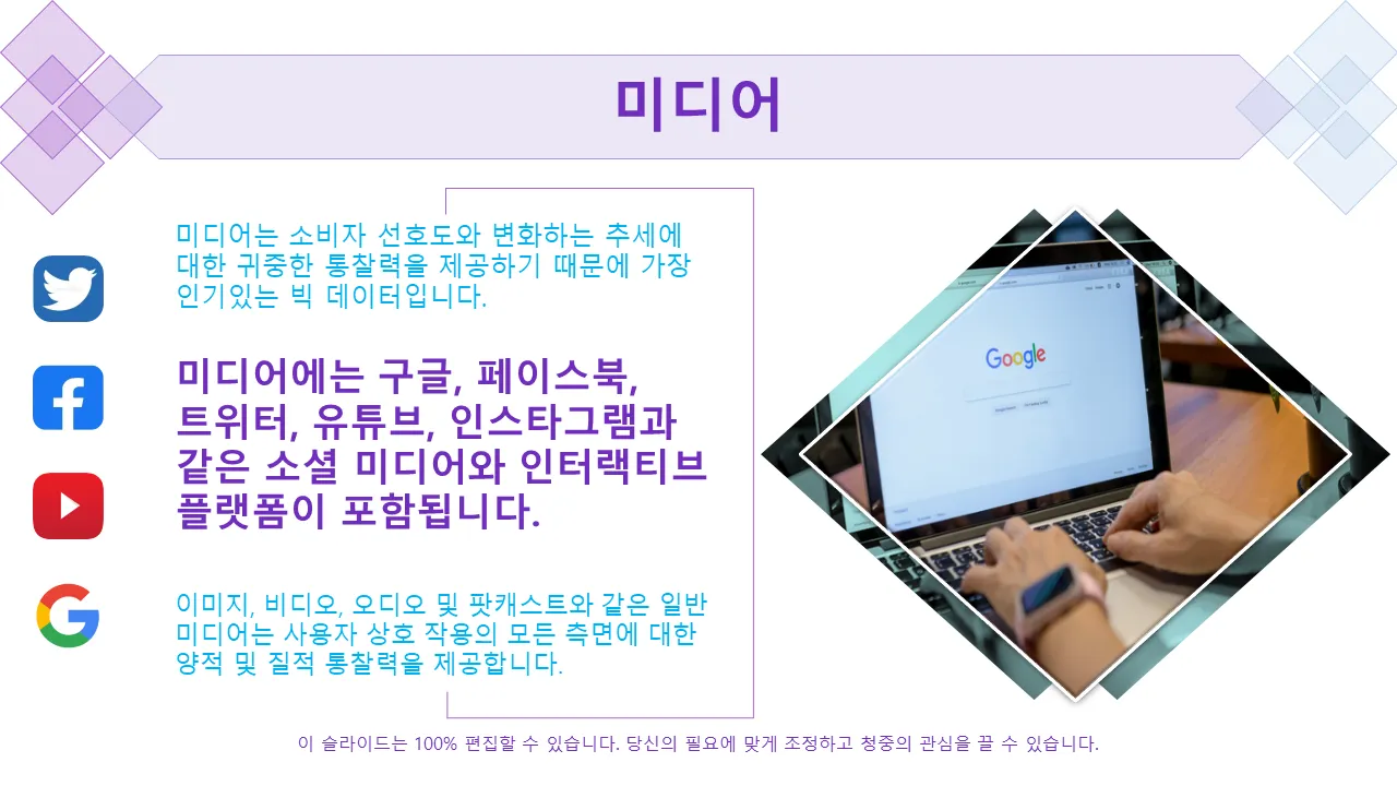 - Microsoft PowerPoint 및 Google과 호환 슬라이드