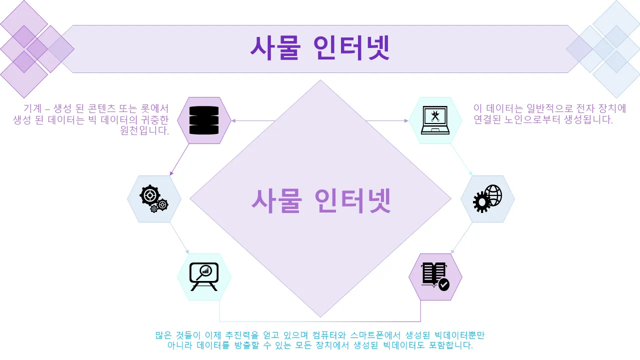 비즈니스 리더, 데이터 과학자, 마케팅 팀은 이 템플릿을 사용하여 기술, 금융, 소매를 포함한 산업 전반에 걸쳐 복잡한 분석 결과를 전달합니다. 경영진 브리핑, 제품 출시, 디지털 혁신 로드맵에 적합합니다. 컨설턴트와 분석가는 KPI, IoT 채택 동향 및 예측 모델을 제시하기 위한 구조화된 레이아웃의 이점을 누릴 수 있습니다. 템플릿은 내부 교육과 외부 고객 프레젠테이션을 모두 지원합니다.