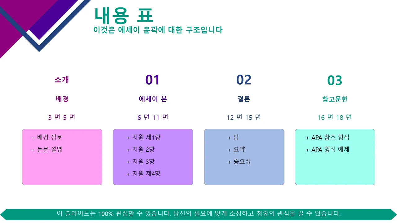 에세이 개요 파워포인트 템플릿 설명