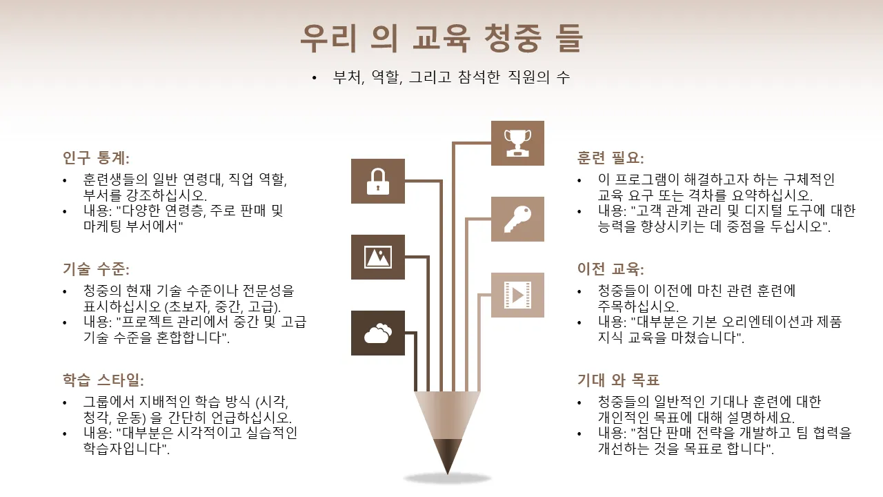 - 일관된 스토리텔링을 위해 모든 슬라이드에서 일관된 디자인 언어
