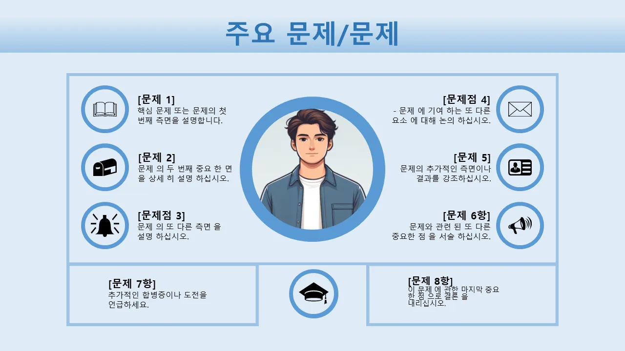 비즈니스 리더, 컨설턴트, 프로젝트 관리자는 이 템플릿을 사용하여 이해관계자, 투자자 또는 내부 팀에게 연구 결과, 전략 계획 및 성과 검토를 제시합니다. 이는 주요 결과에 대한 명확한 의사소통이 중요한 컨설팅, 기업 전략, 디지털 혁신과 같은 산업에서 잘 작동합니다. 구조화된 문제 해결 및 증거 기반 결론이 필요한 학술 또는 비영리 회의에도 적합합니다.