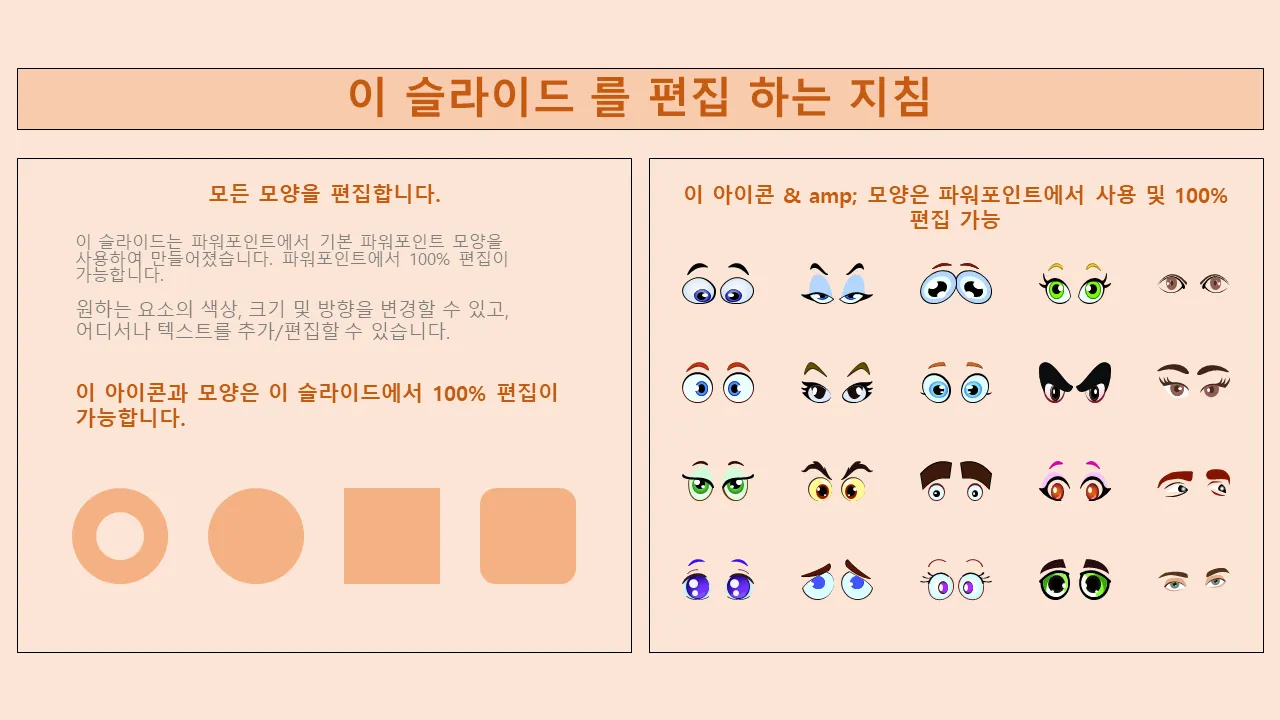 - 슬라이드 전체에 감정과 개성을 전달하는 표현력 있는 만화 눈 그래픽