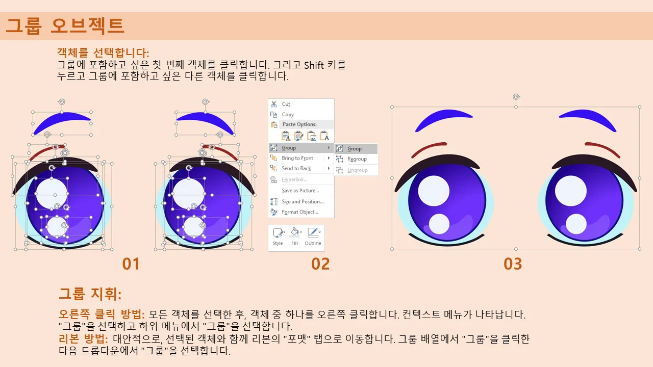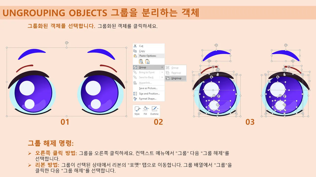 - 고급 편집을 위한 요소 그룹화 및 그룹 해제에 대한 지침 포함