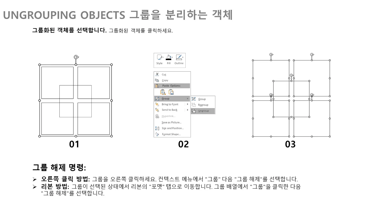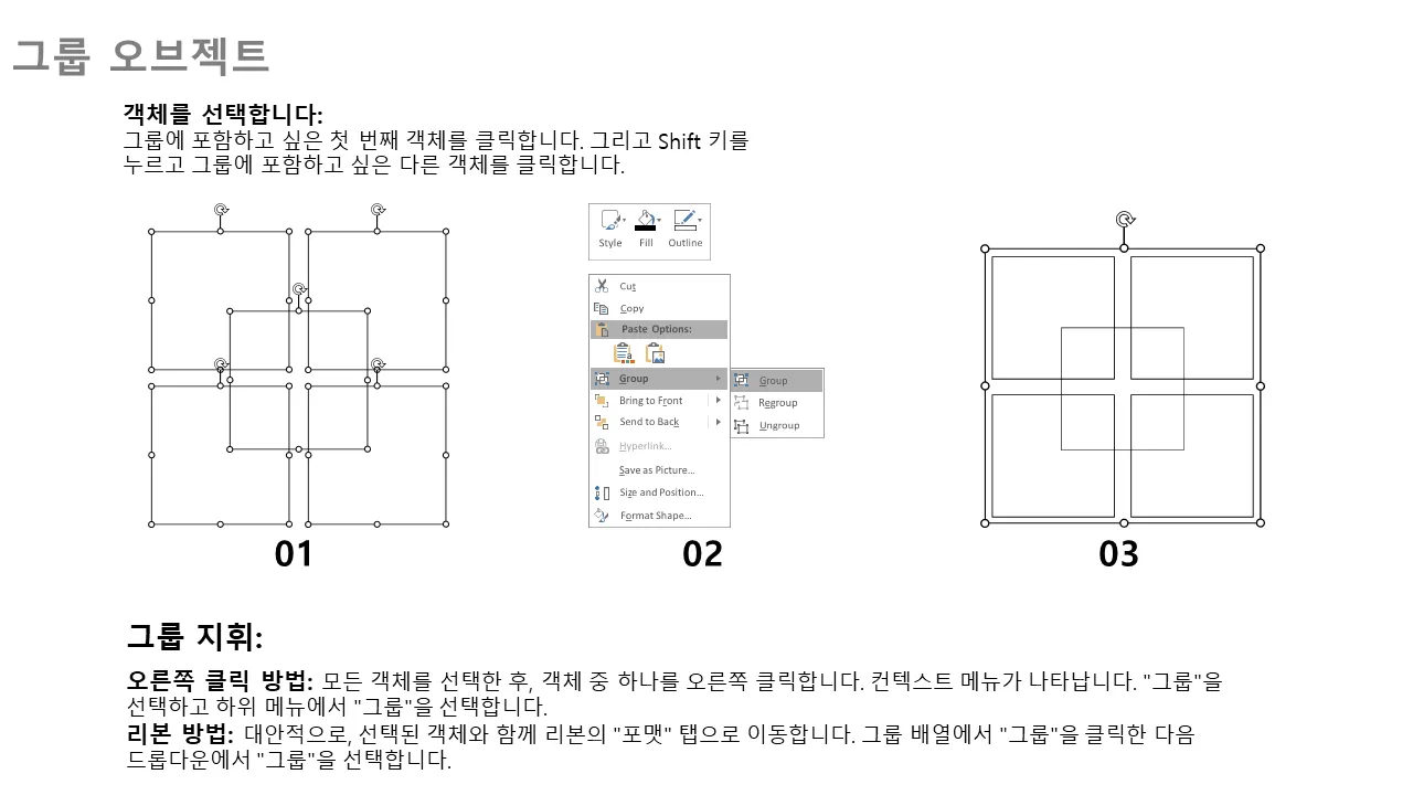 - 디자인 무결성을 유지하기 위한 개체 그룹화 및 그룹 해제 지침