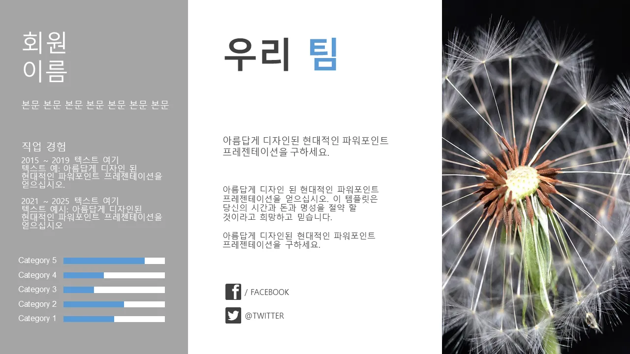 민들레 씨앗 날리기 파워포인트 템플릿의 특징