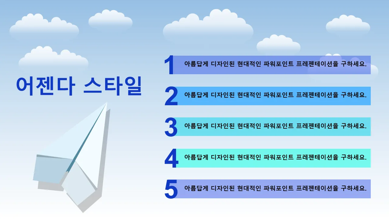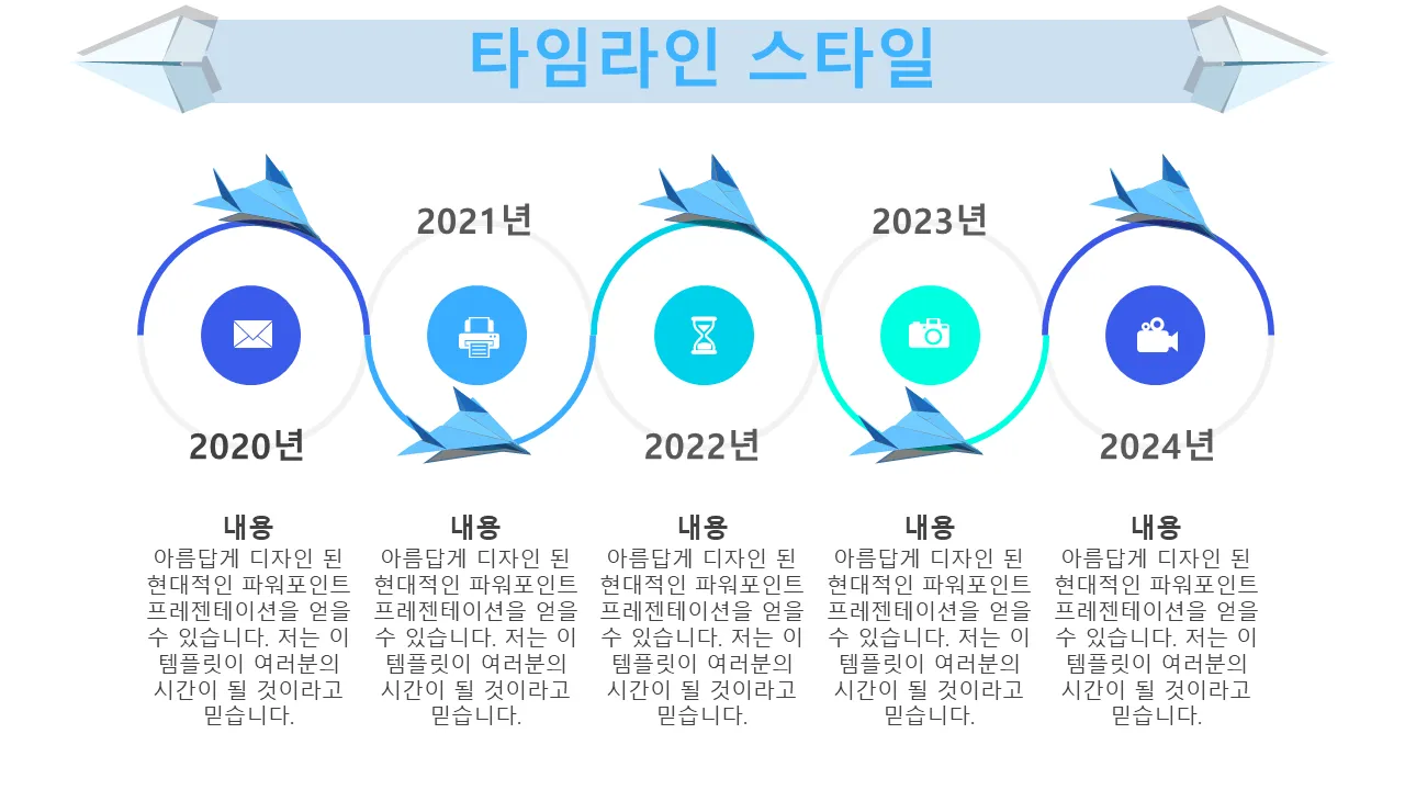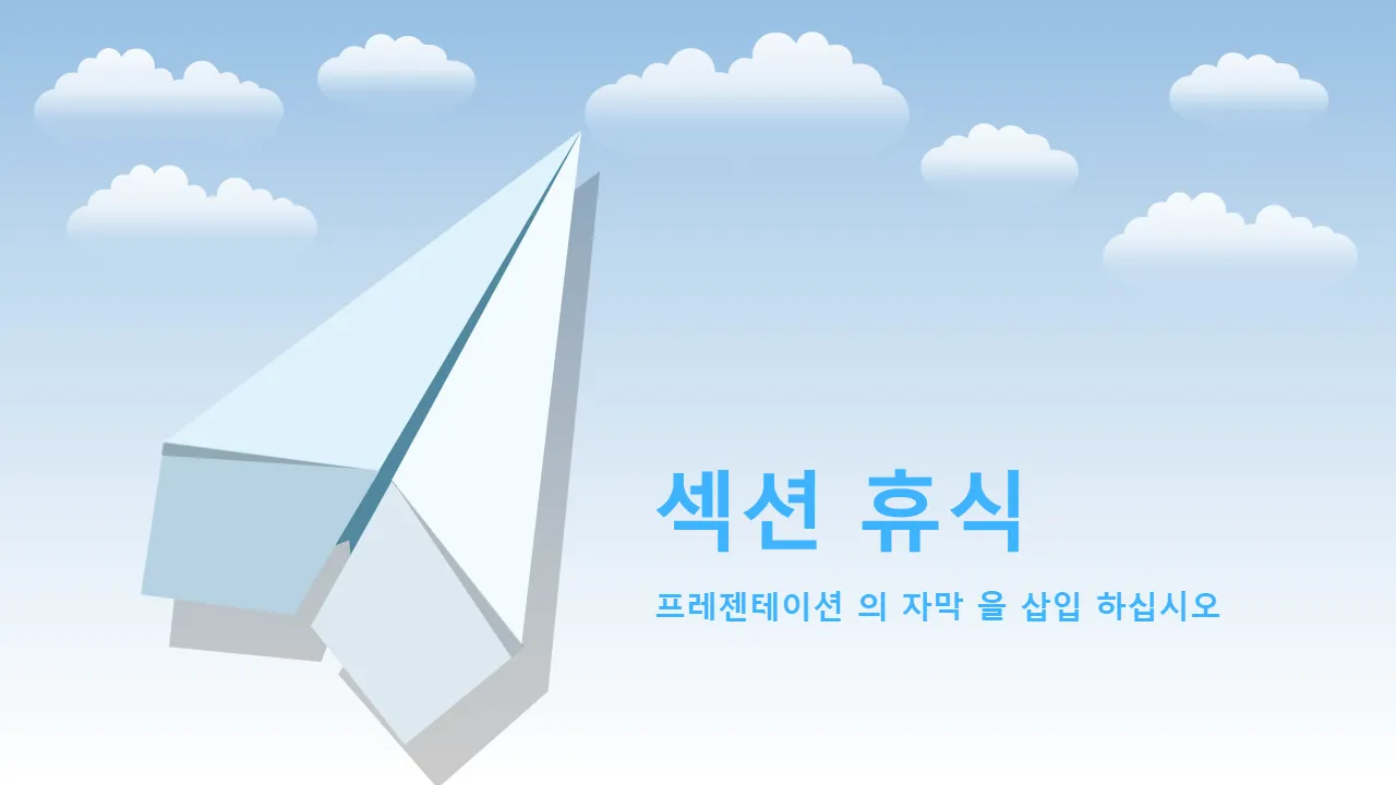 파란색 종이 비행기 디자인 파워포인트 템플릿 설명