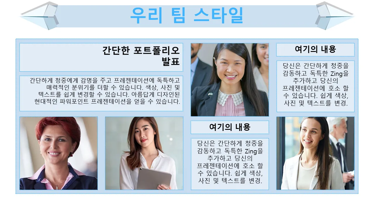 - 명확한 프레젠테이션 구조 및 청중 안내를 위한 주제 스타일 슬라이드 레이아웃