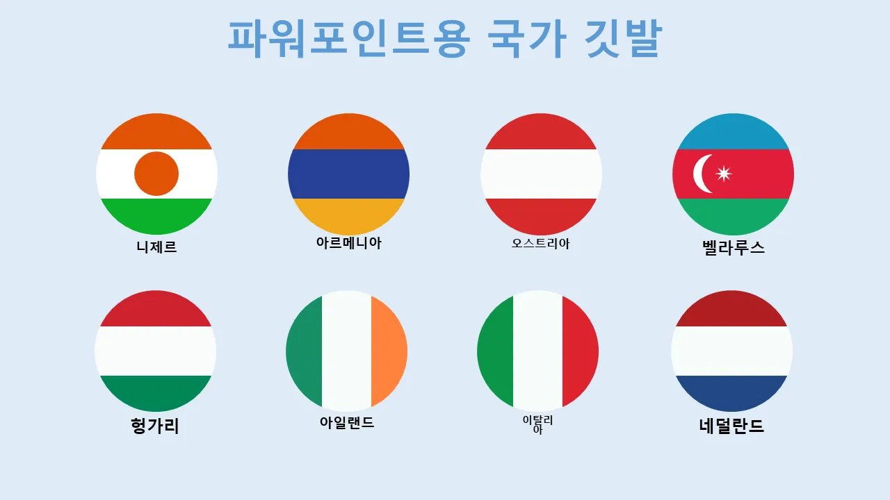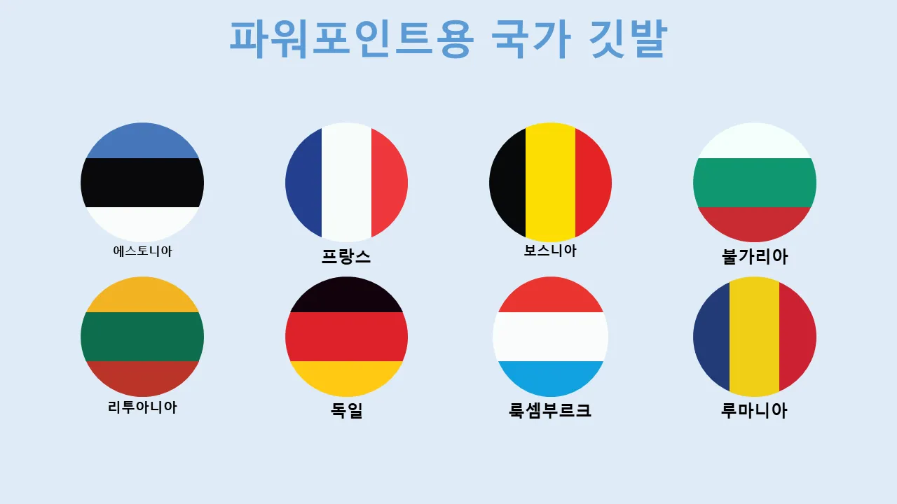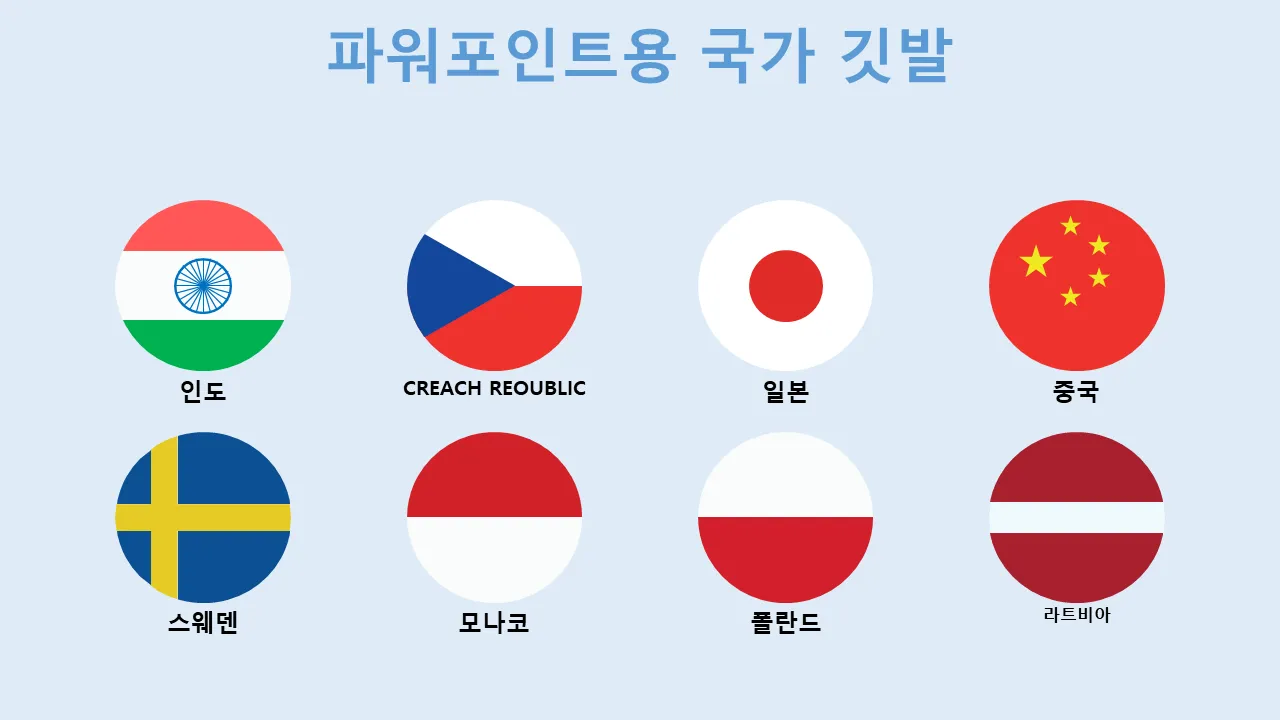 - PowerPoint 호환성에 최적화된 고해상도 국기 그래픽