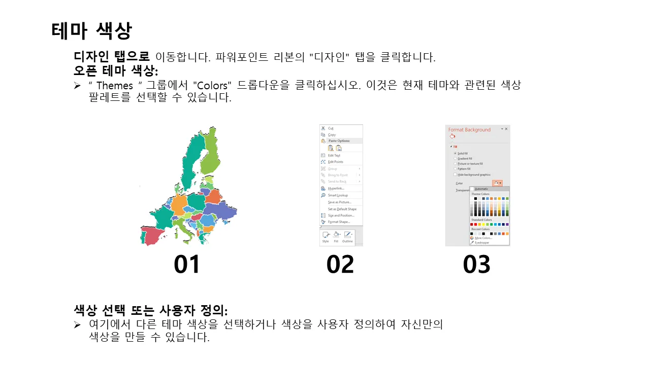 - 일관된 스토리텔링을 위해 모든 슬라이드에서 일관된 디자인 언어