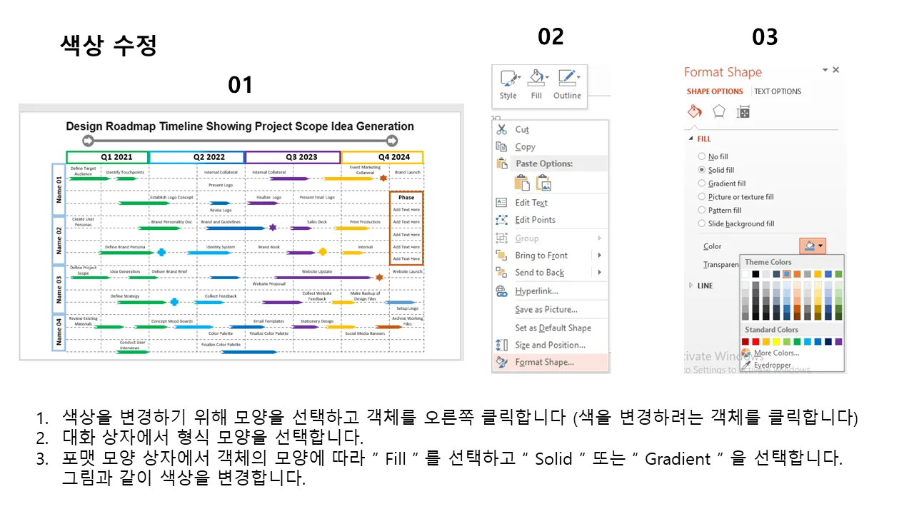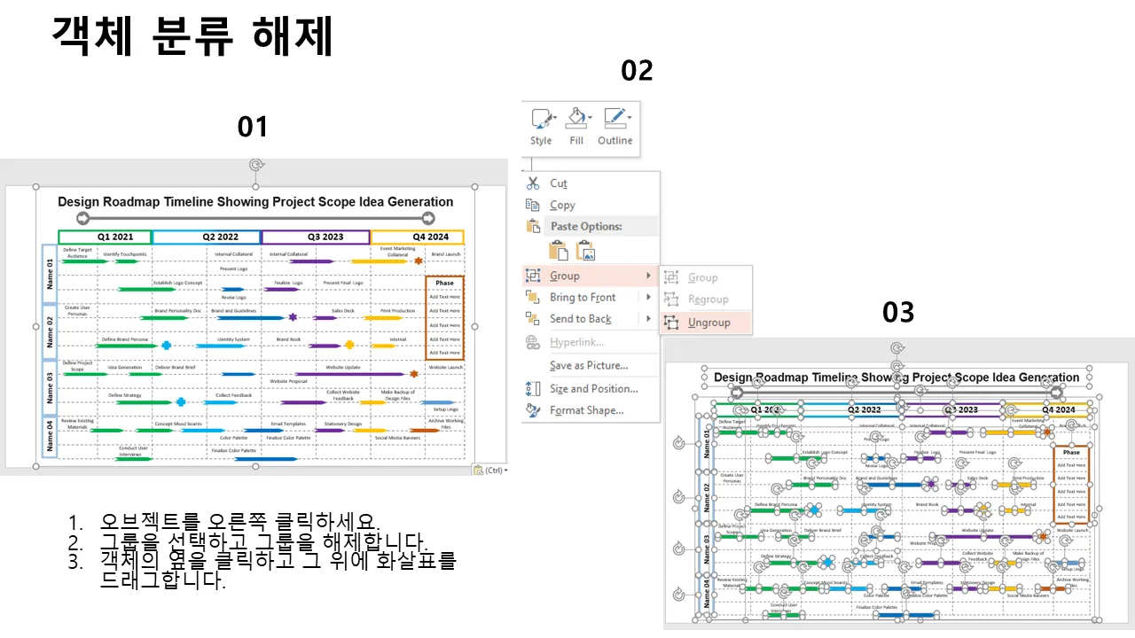프로젝트 범위 로드맵 타임라인 PowerPoint 템플릿 설명