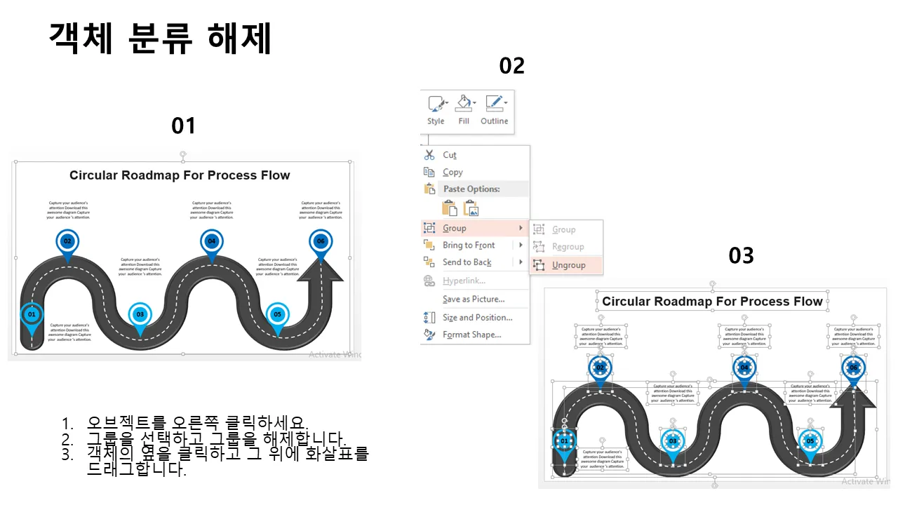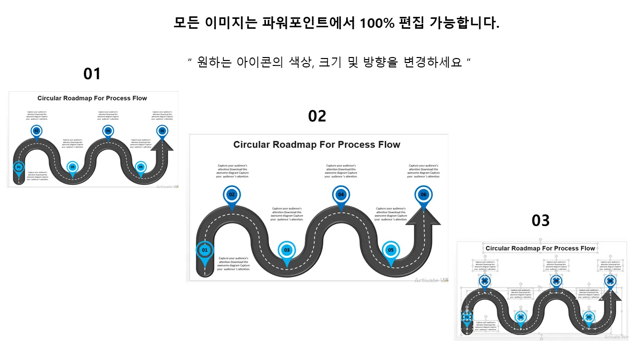 순환형 프로세스 흐름 로드맵 PowerPoint 템플릿 설명