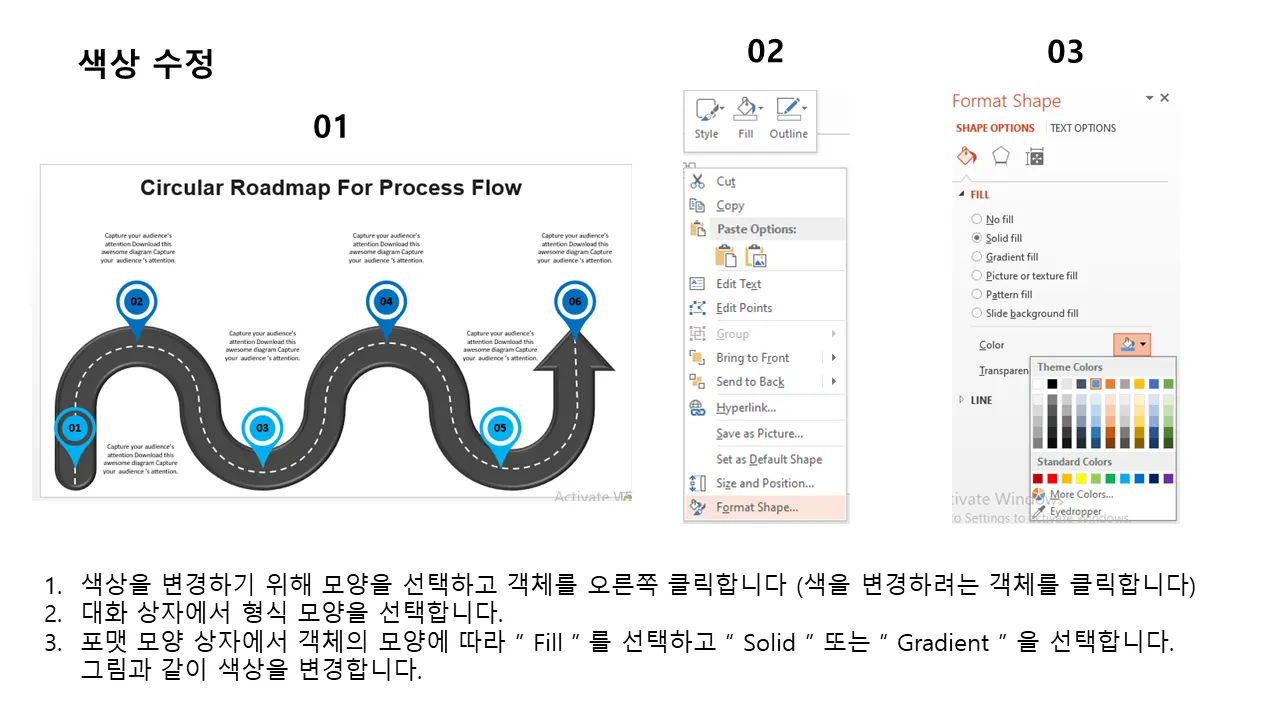 프로세스 흐름 플랫 파워포인트 디자인을 위한 원형 로드맵의 특징