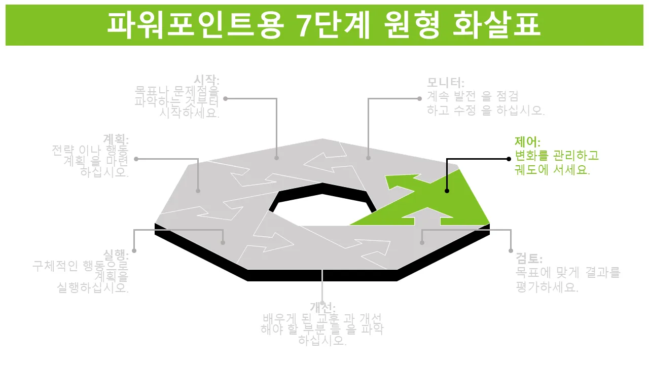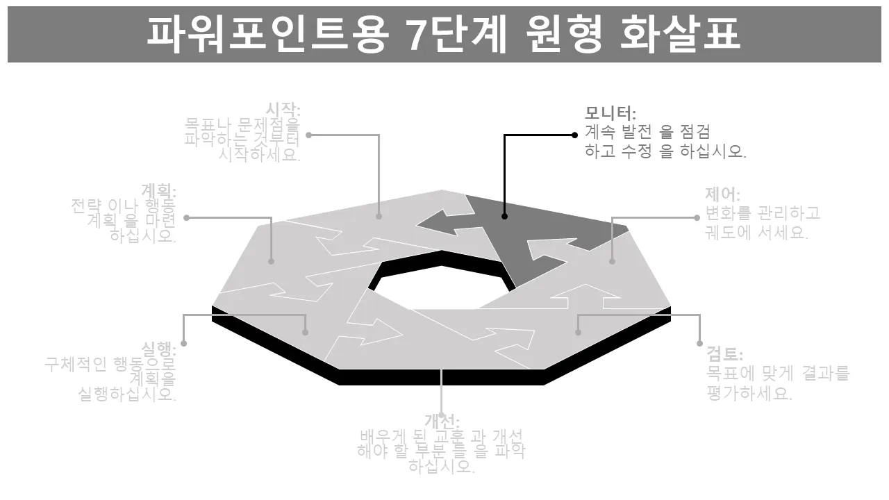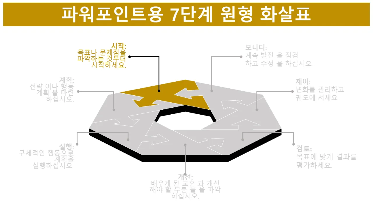 Powerpoint용 7단계 원형 화살표 다이어그램의 특징