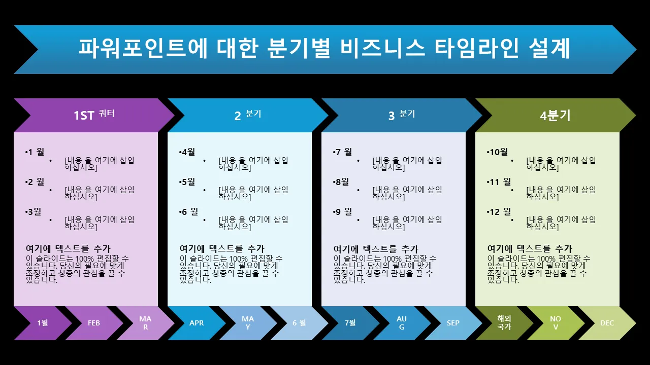 PowerPoint용 분기별 비즈니스 타임라인 디자인의 특징
