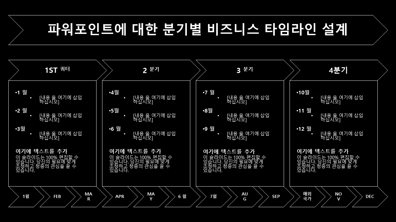 분기별 비즈니스 타임라인 PowerPoint 템플릿 설명