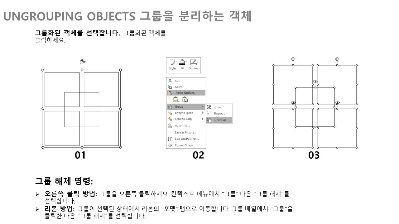 - 손쉬운 편집 및 개체 관리를 위한 통합 그룹화 및 그룹 해제 지침