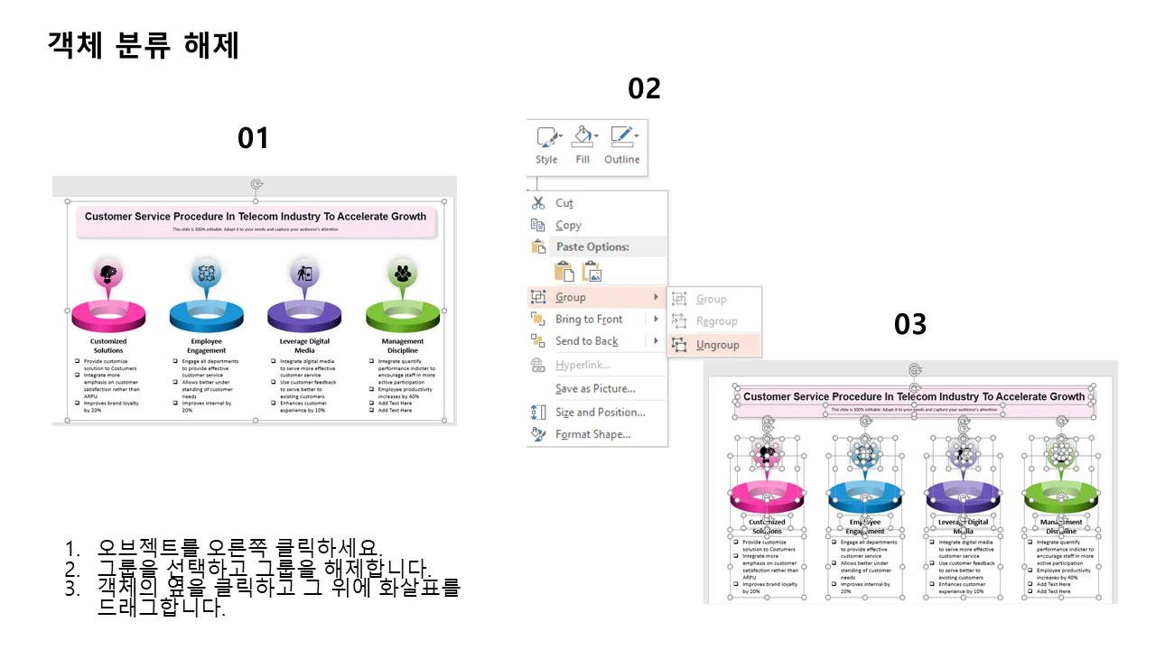 - 프레젠테이션을 위한 구조화된 레이아웃 부서 간 협업 및 직원 참여