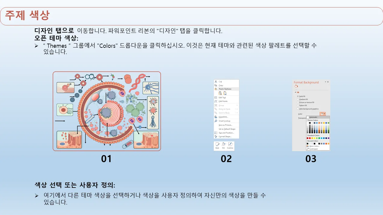 - 일관적인 스토리텔링을 위해 모든 슬라이드에서 일관된 디자인 언어