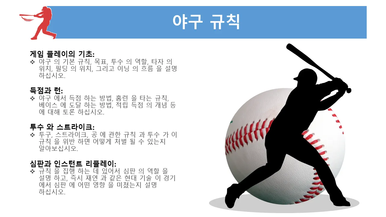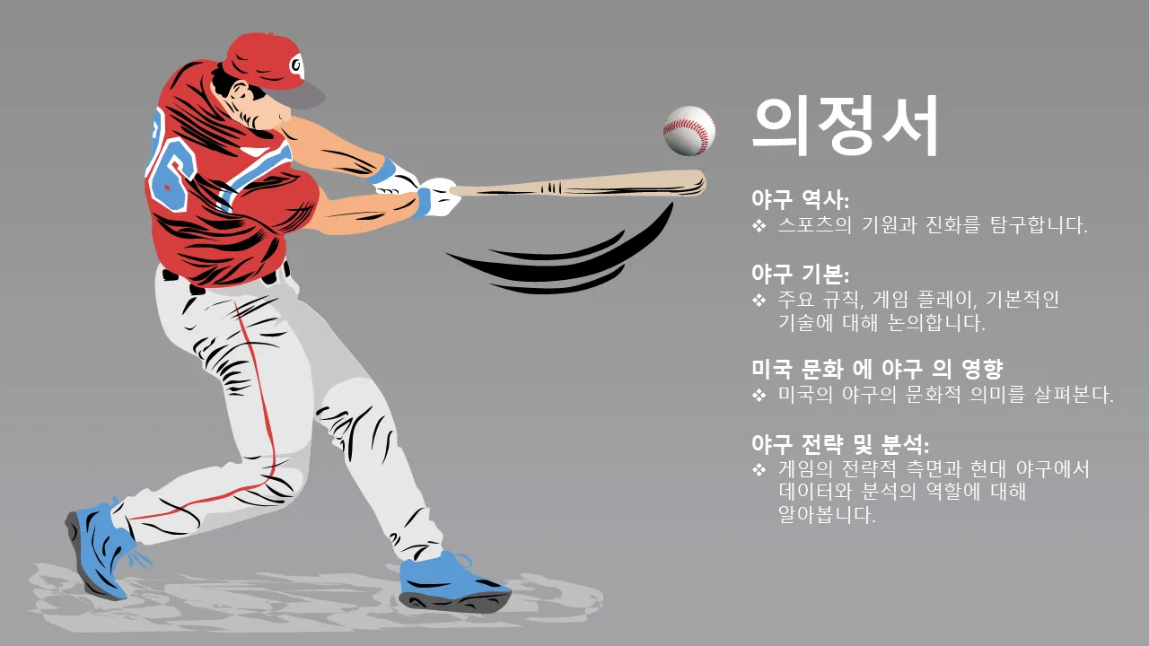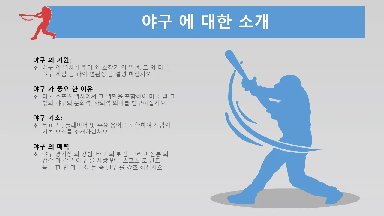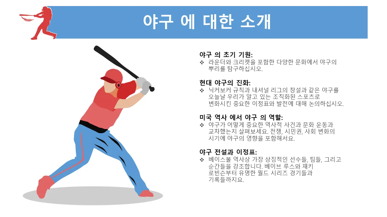 야구 역사 및 문화 파워포인트 템플릿 설명
