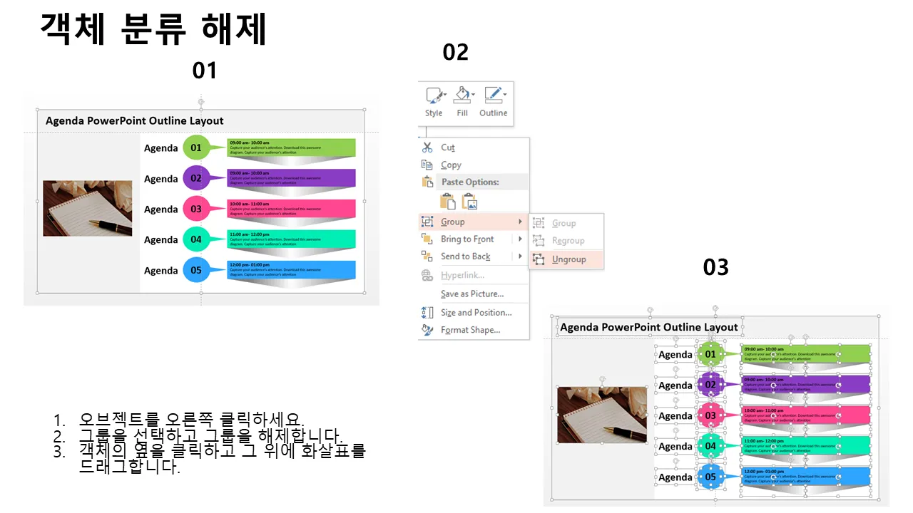 의제 파워포인트 개요 레이아웃의 특징