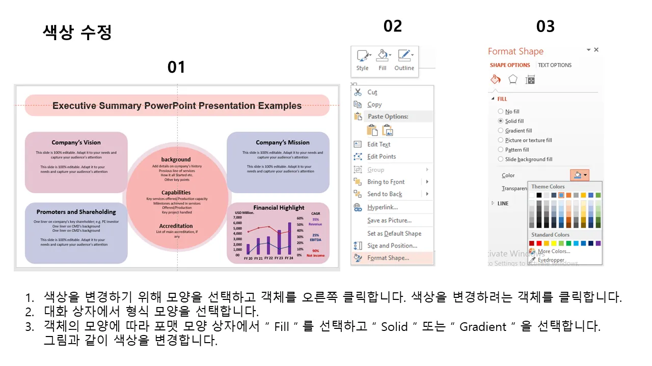경영진 요약 파워포인트 프레젠테이션 예시 설명