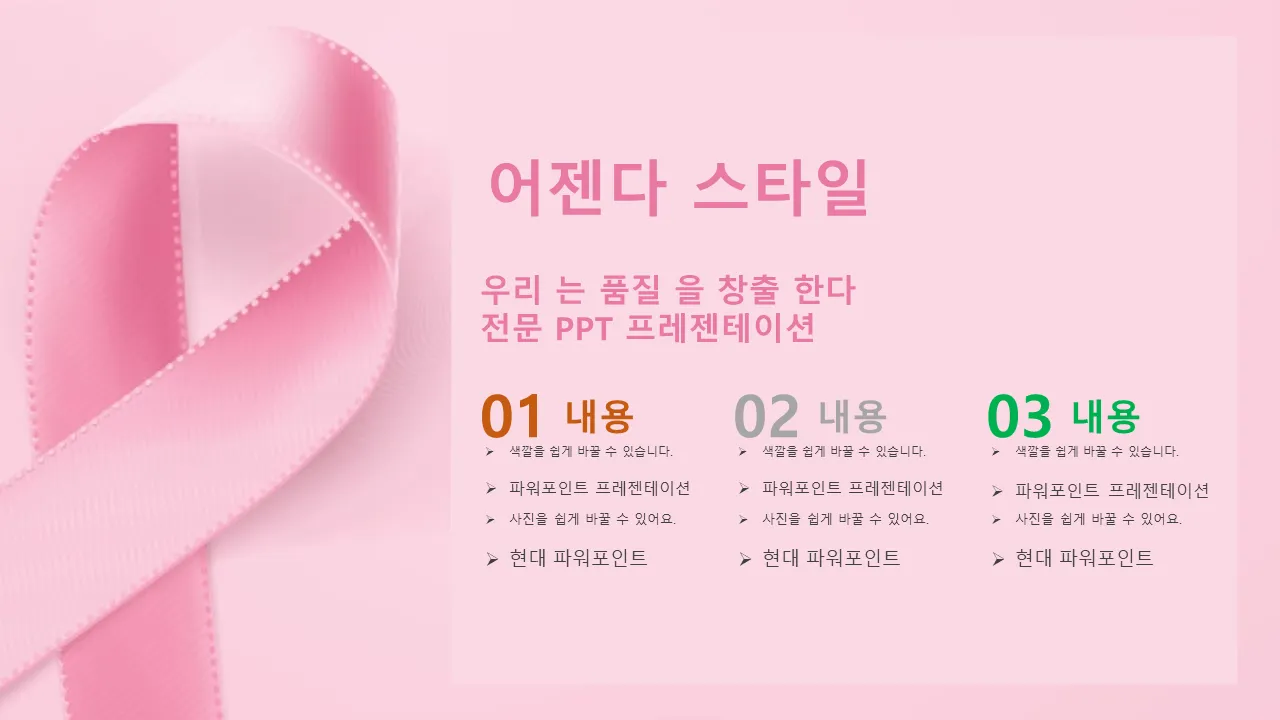 유방암 핑크 리본 파워포인트 템플릿의 특징